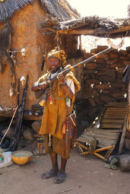 Este simkpático personaje, es un miembro del la etnia Dogon, vive en la falla de Bandiagara y es un gran cazador, pero lo mas interesante es ver las armas que utiliza para realizar la actividad.